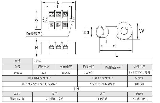 TB6003 TB系列组合接线端子